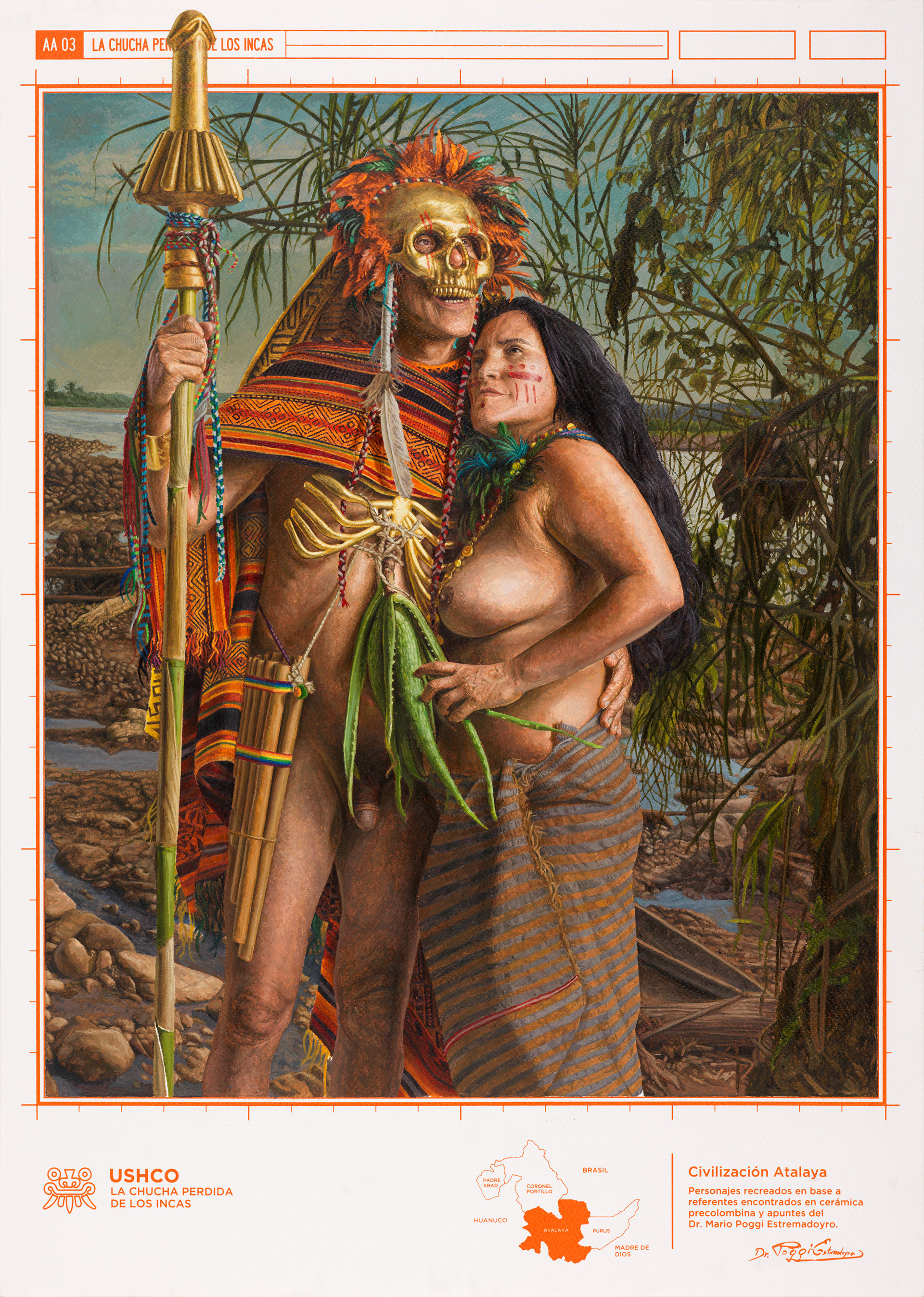A partir del “Manual freudiano para leer el antiguo Perú” y aplicando el ejercicio errado de imaginar el pasado de una población que habitó un territorio desde la occidentalidad del que imagina, empiezo a reconstruir la civilización que potencialmente Poggi imaginó en la selva del Perú desde mi propia occidentalidad que es la de la costa norte del Perú, de esta manera empleo las culturas prehispánicas Mochica y Chimu que tuvieron un nivel de desarrollo impresionante en la cerámica y retrataron sobresalientemente el tema mágico-sexual, lo cual conecta perfectamente con el nombre impuesto por el Dr. Poggi: La Chucha Perdida de los Incas.